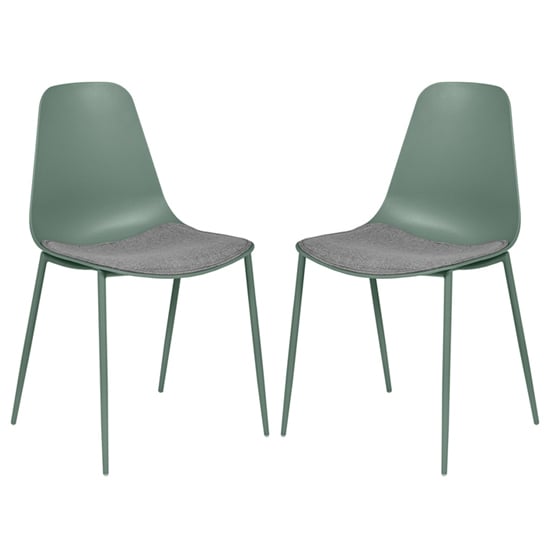 Naxos Sage Metal Dining Chairs With Fabric Seat In Pair