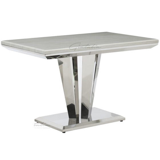 Elevate your dining room with the bold sophistication of the Furniture in Fashion Richmond Marble Rectangular Dining Table in White. This statement making piece blends the timeless luxury of natural marble with modern design elements, making it the perfect centrepiece for contemporary interiors. With its richly veined White marble top and sleek lines, it brings instant elegance and a touch of drama to any dining space. Crafted with durability and aesthetics in mind, the Richmond dining table offers a spacious surface ideal for everyday meals or special gatherings. Its robust pedestal base ensures stability while complementing the overall look with a strong, architectural presence. Perfect for hosting guests or enjoying family dinners, this table combines form and function with undeniable style. FEATURES : Material : Marble, Stainless Steel Finish : White, Chrome Add some style to your home with this amazing quality and unique Richmond Marble and chrome top Dining Table This stunning dining table is sure to add a unique touch to your dining area The table top is finished in marble and the frame and legs are high quality chrome The table is compact ideal to fit into small spaces around your home Naturally veined surface provides an upscale and unique finish to every table Sleek rectangular shape with deep White tones adds sophistication to any decor Ideal for seating 6 guests comfortably, perfect for entertaining Provides excellent stability with a bold design that enhances the tables overall look Polished marble surface resists stains and is simple to maintain Available at an affordable price Images shown are for illustration purpose only DIMENSIONS : Height: 76cm Width: 120cm Depth: 80cm